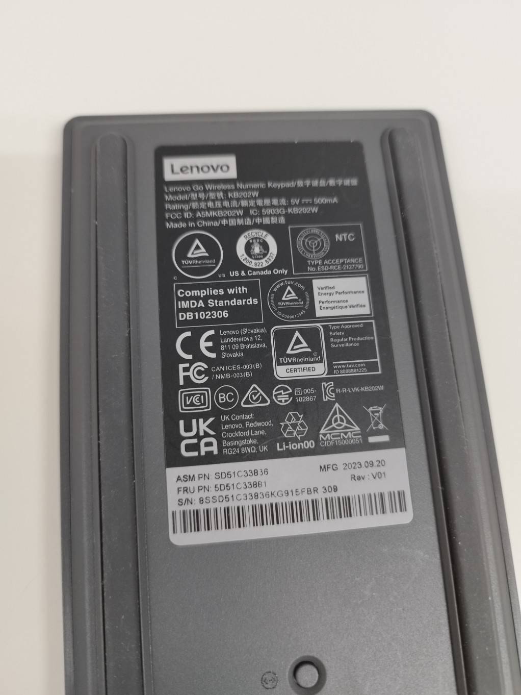 【良品】Lenovo Go Wireless Numeric Keypad/KB202W/ワイヤレステンキー