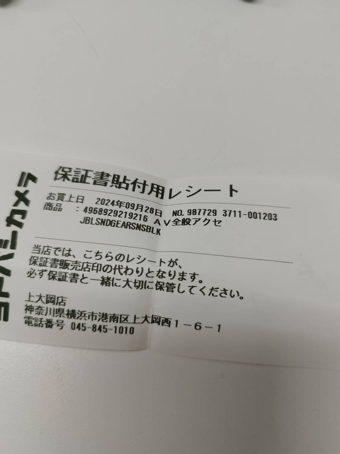 保証書貼付用レシート(画像1枚目に写っているもの)