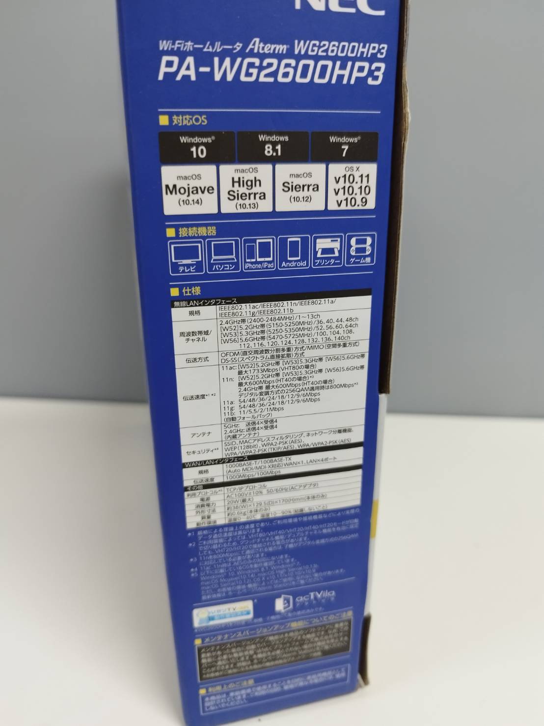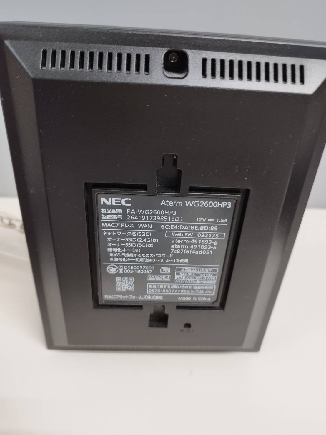 【良品】NEC Aterm PA-WG2600HP3/Wi-Fiホームルーター