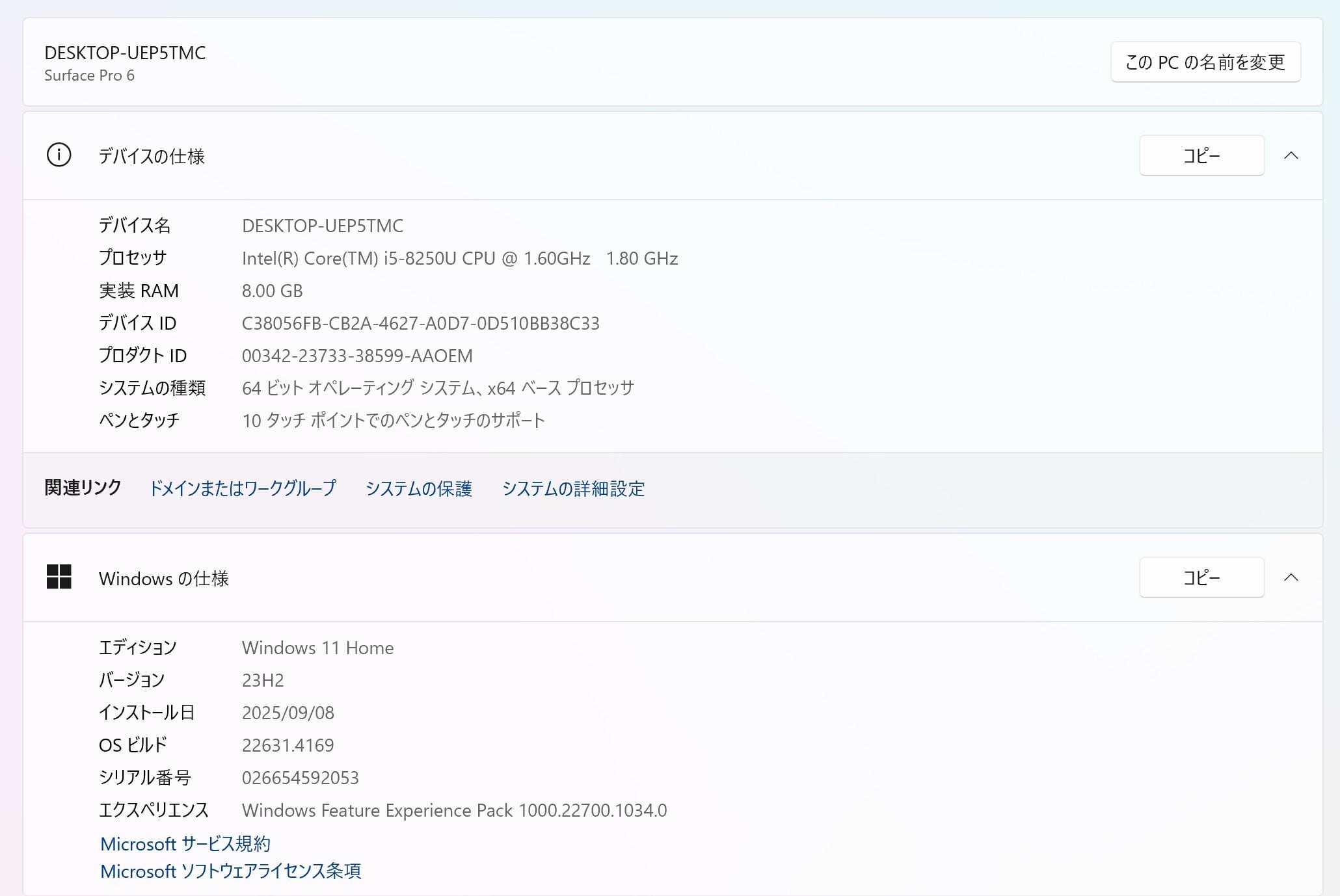 【現状品】Surface Pro6/intel Core i5/256GB/8GB ⑥