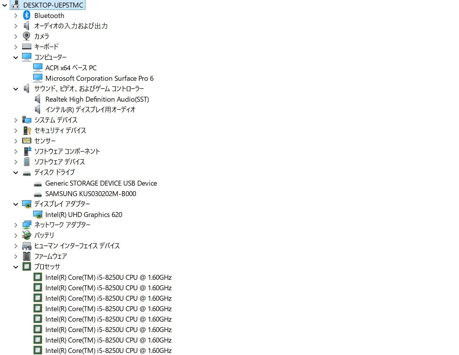 CPU:Intel Core i5-8250U 1.60GHz(1.80GHz)
