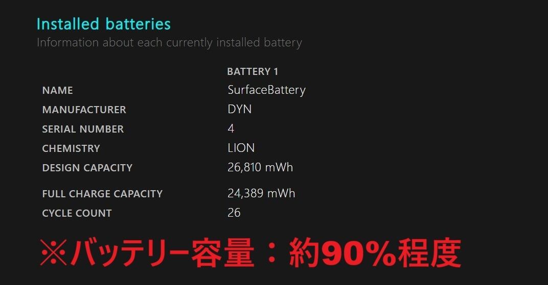 バッテリー状態:画像をご参考ください(※バッテリーは消耗品のため、保証致しかねます。またバッテリー状態はあくまで参考値のため、実際の稼働時間を保証するものではございません。)