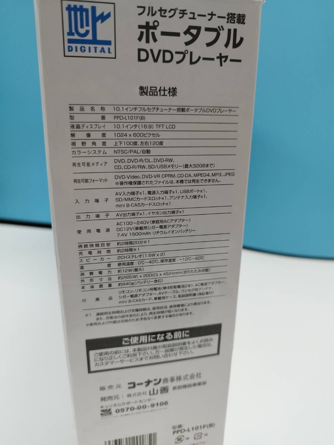 【未使用に近い】PortTech PPD-L101F(B)/フルセグチューナー搭載 ポータブルDVDプレーヤー/10.1インチ/2022年製