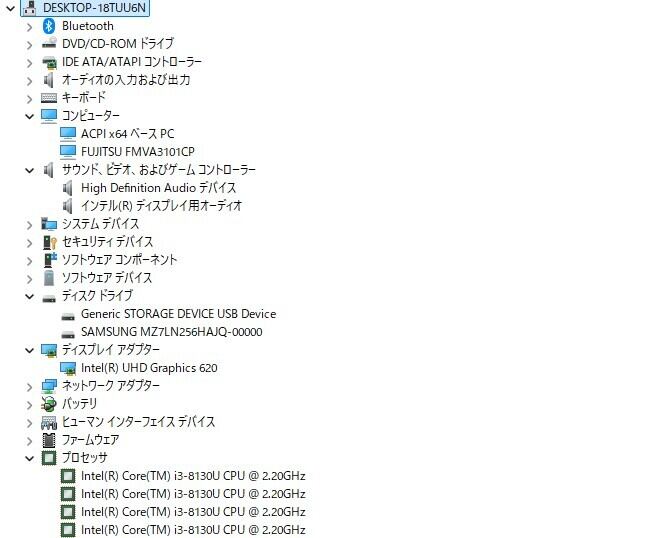 ・CPU:Intel Core i3-8130U 2.20GHz(2.20GHz)