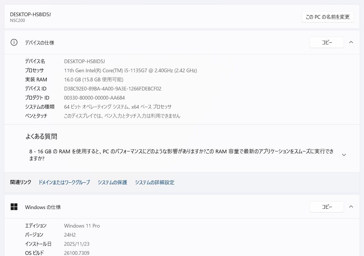 ・OS:Windows11 Pro/24H2(ライセンス認証・Windows update済)