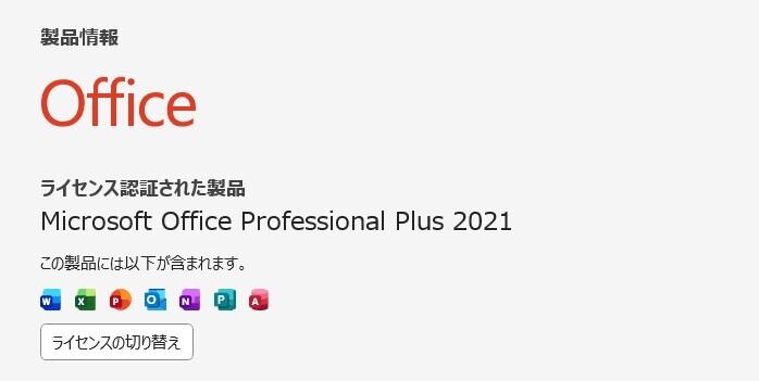 ・Office Professional Plus 2021 ライセンス認証済み(プロダクトキーなどは付属しません)