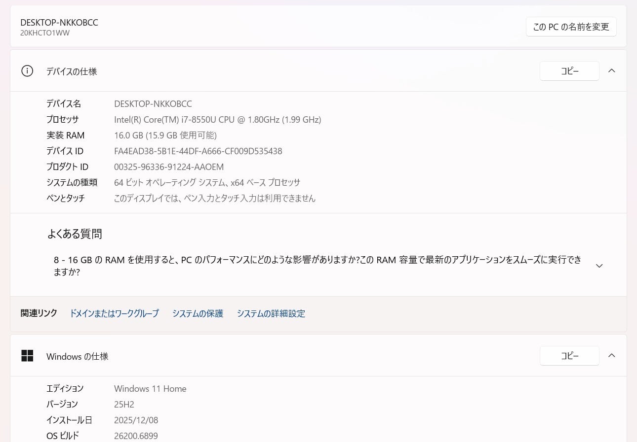 ・OS:Windows11 Home/25H2(ライセンス認証・Windows update済)