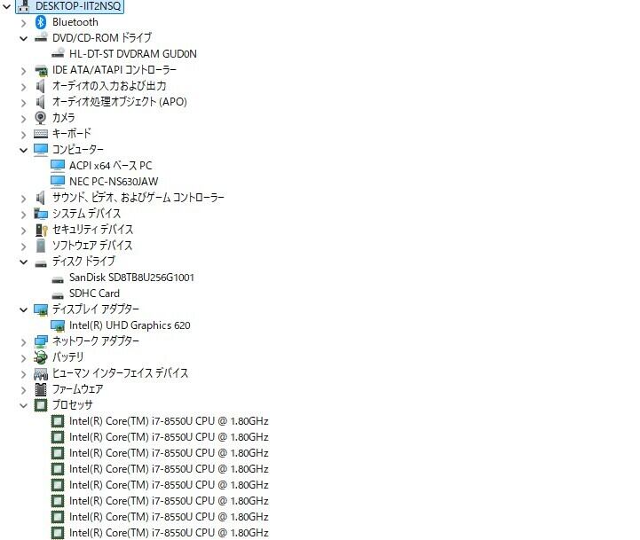 ・CPU:Intel Core i7-8550U 1.80GHz(1.99GHz)