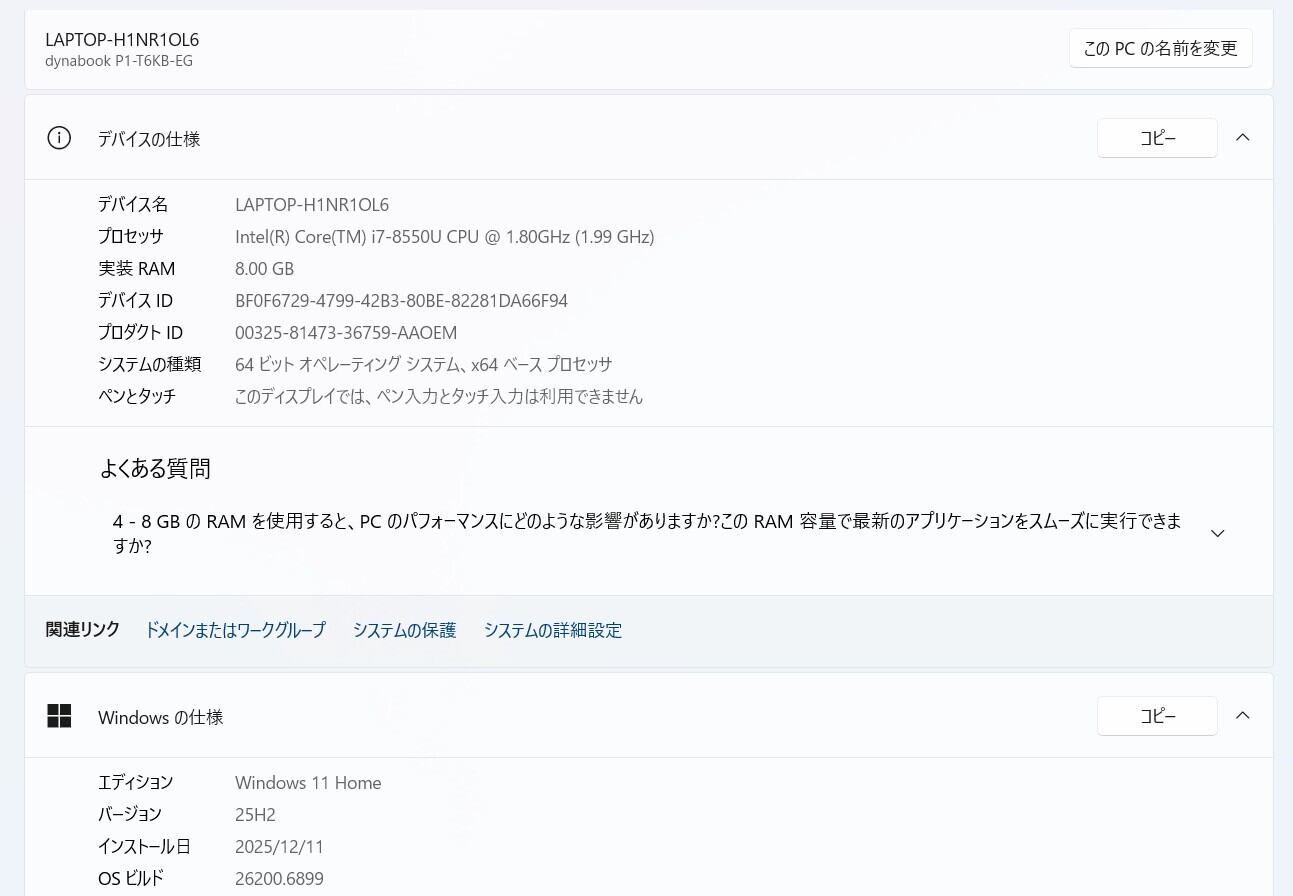 ・OS:Windows11 Home/25H2(ライセンス認証・Windows update済)