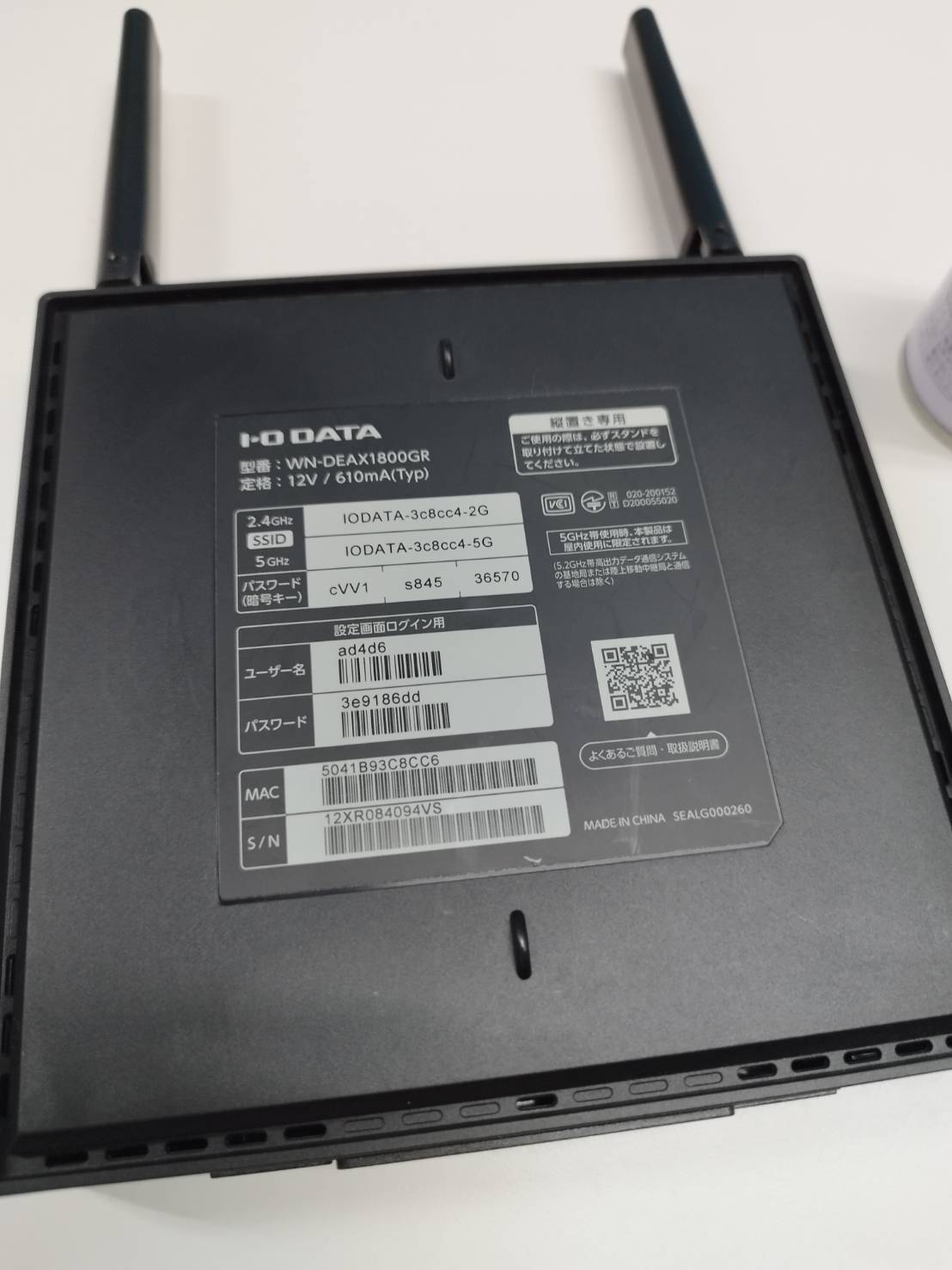 【良品】I-O DATA WN-DEAX1800GR/無線LANルーター