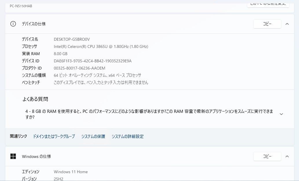 ・OS:Windows11 Home/25H2(ライセンス認証・Windows update済)