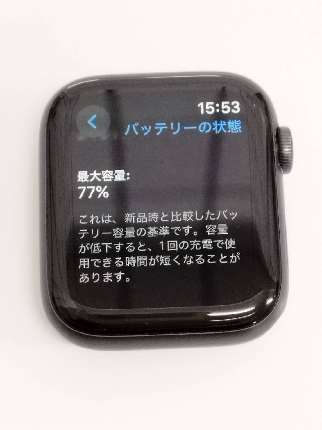 バッテリー最大容量:77%(4時間経過:97%→83%)