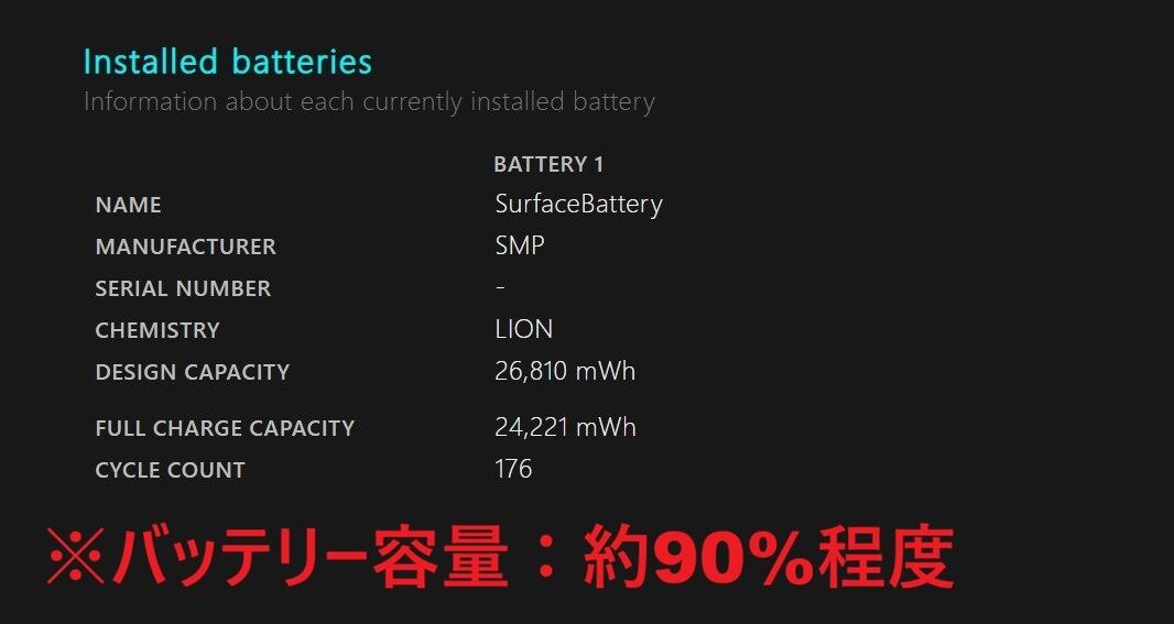 バッテリー状態:画像をご参考ください(※バッテリーは消耗品のため、保証致しかねます。またバッテリー状態はあくまで参考値のため、実際の稼働時間を保証するものではございません。)