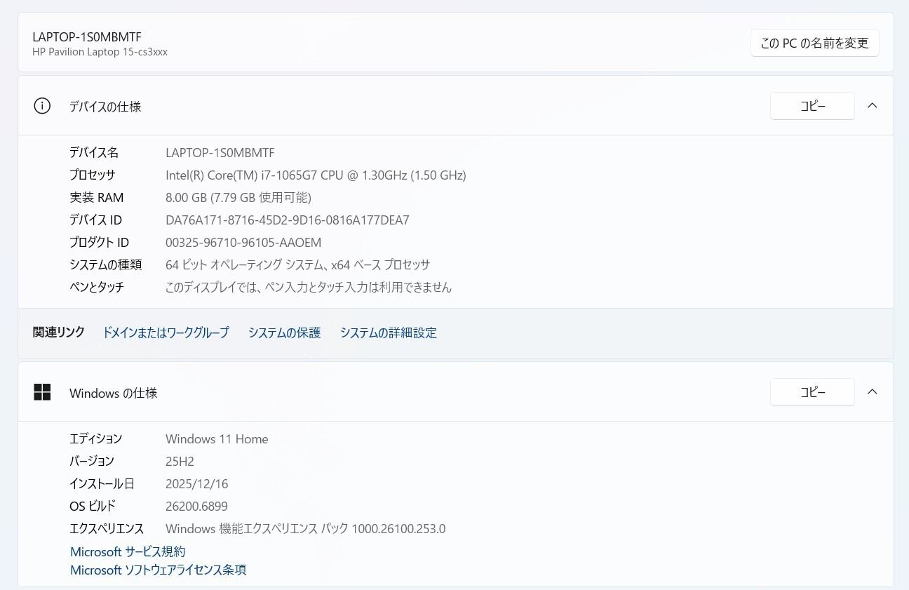 ・OS:Windows11 Home/25H2(ライセンス認証・Windows update済)