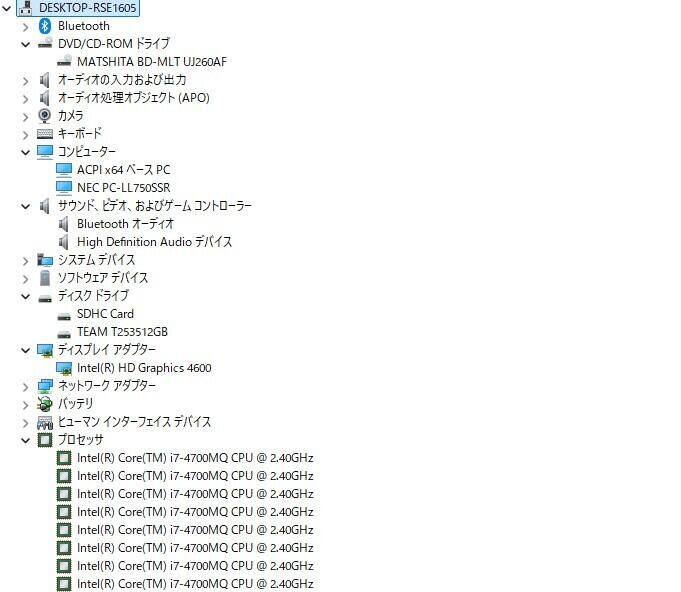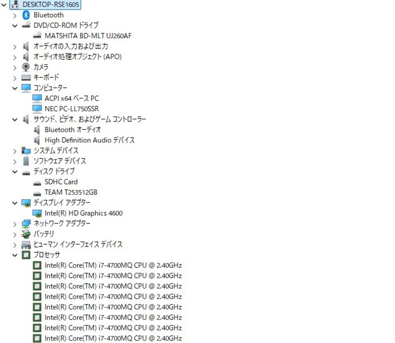 ・CPU:Intel Core i7-4700MQ 2.40GHz(2.40GHz)