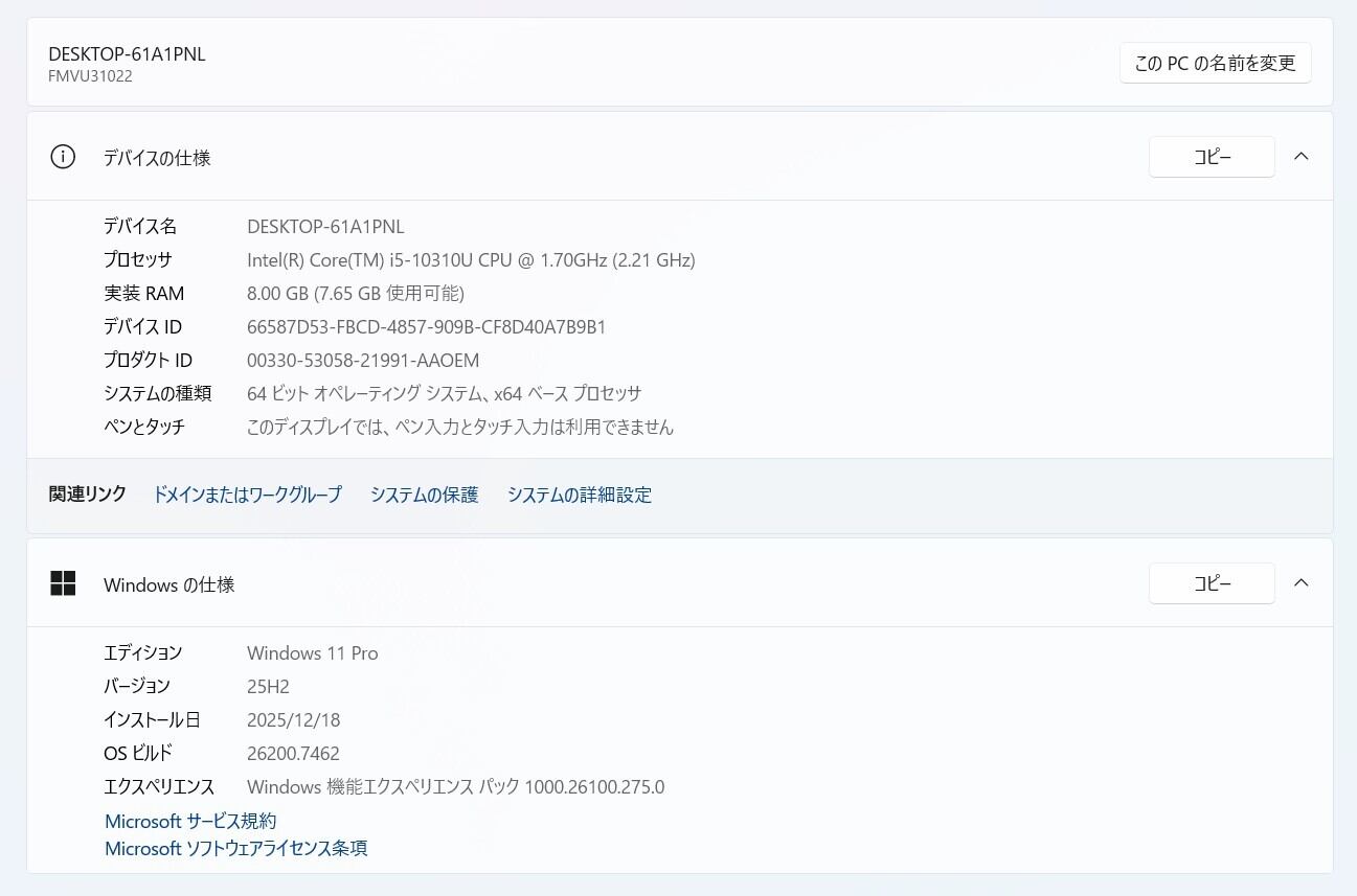 ・OS:Windows11 Pro/25H2(ライセンス認証・Windows update済)