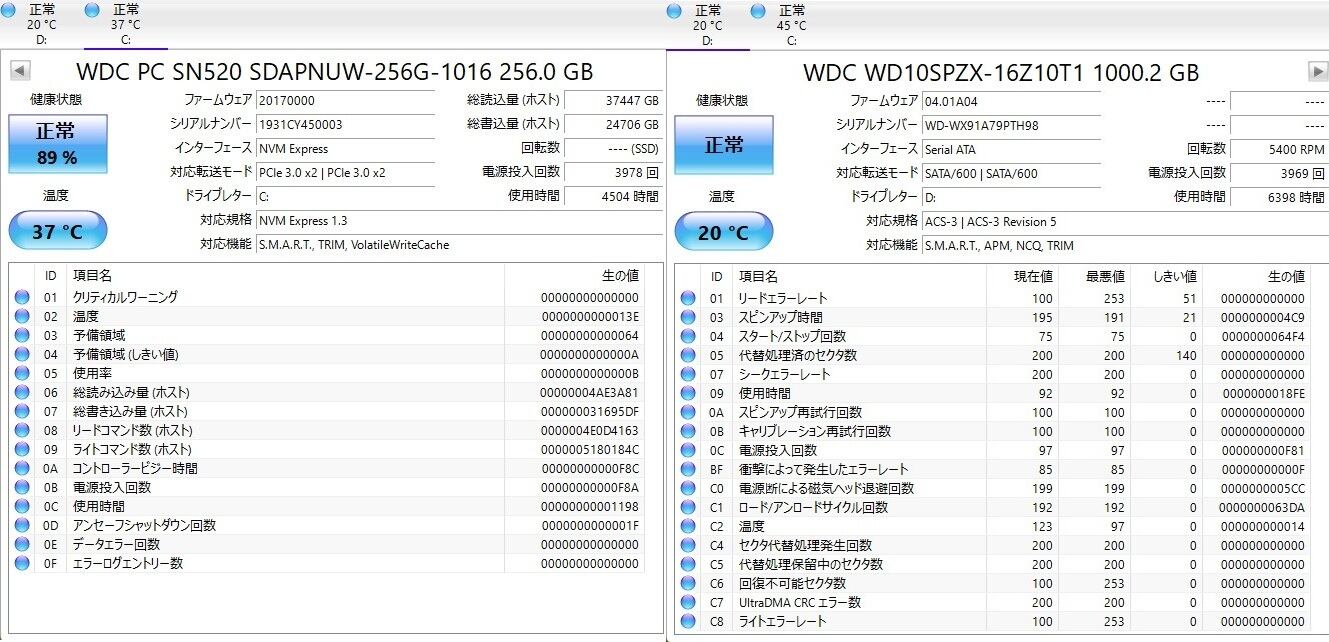 ・ストレージ:SSD 256GB + HDD 1TB