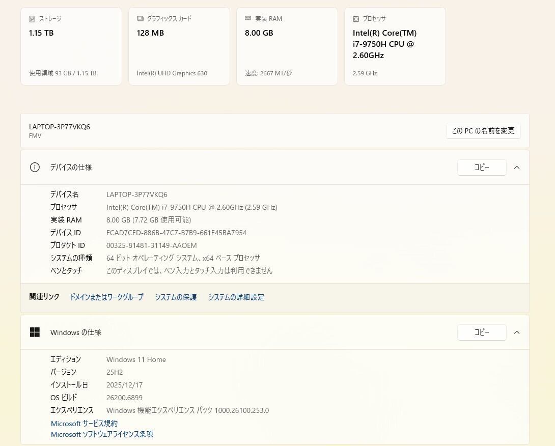 ・OS:Windows11 Home/25H2(ライセンス認証・Windows update済)