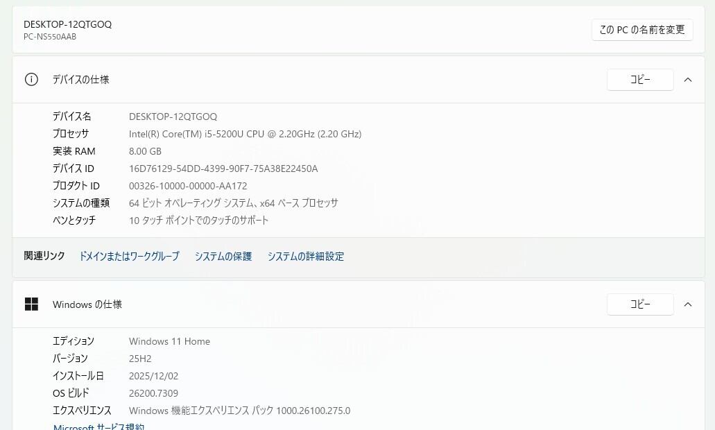 ・OS:Windows11 Home/25H2(ライセンス認証・Windows update済)