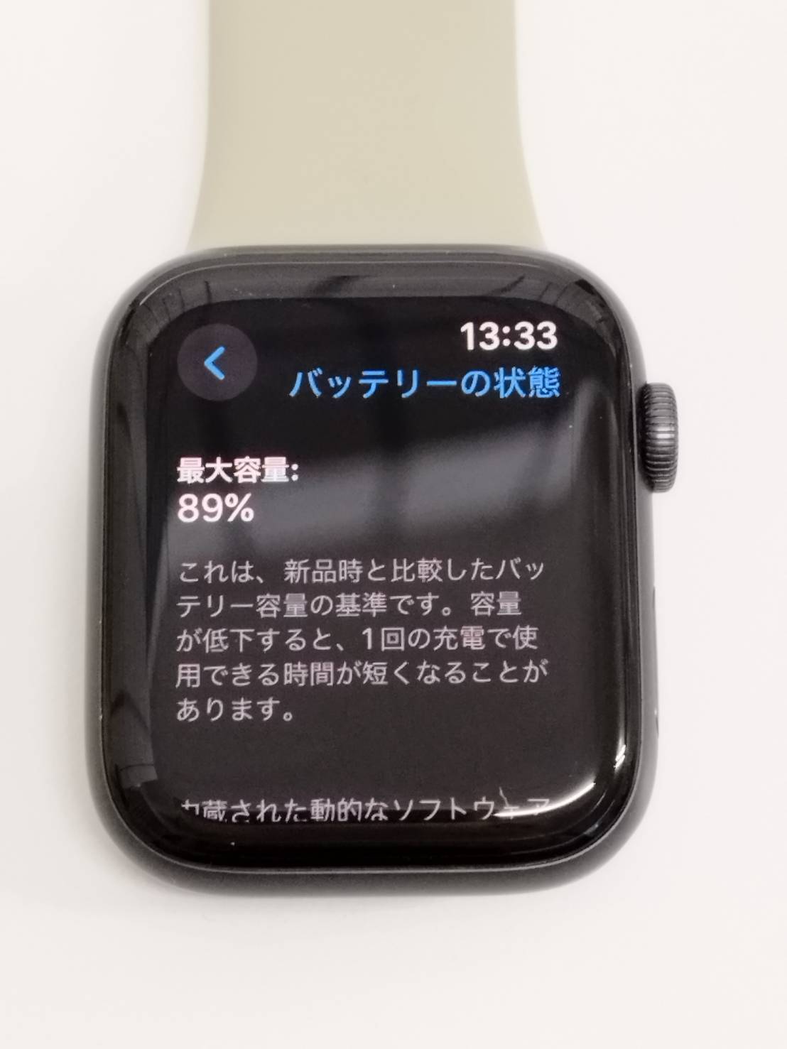 バッテリー最大容量:89%(3時間30分経過:100%→85%)