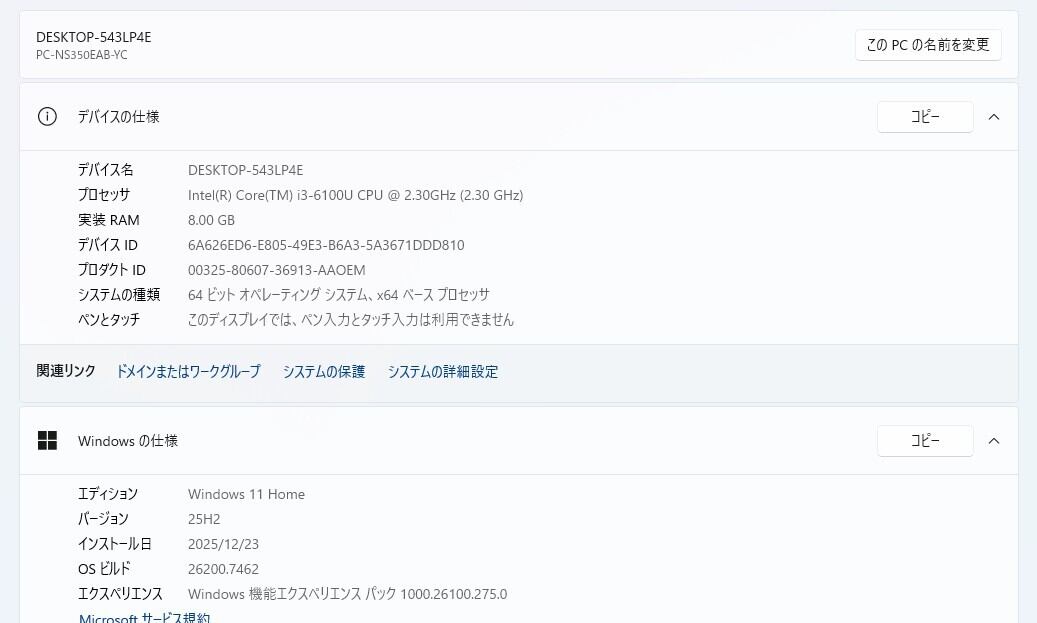 ・OS:Windows11 Home/25H2(ライセンス認証・Windows update済)
