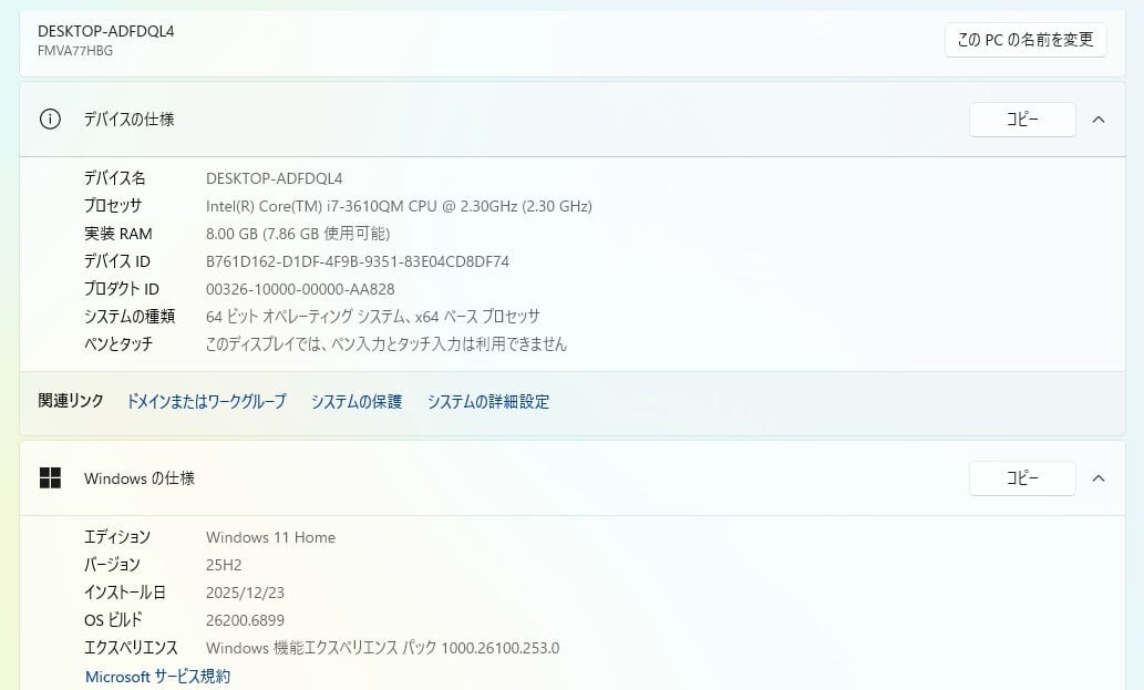 ・OS:Windows11 Home/25H2(ライセンス認証・Windows update済)