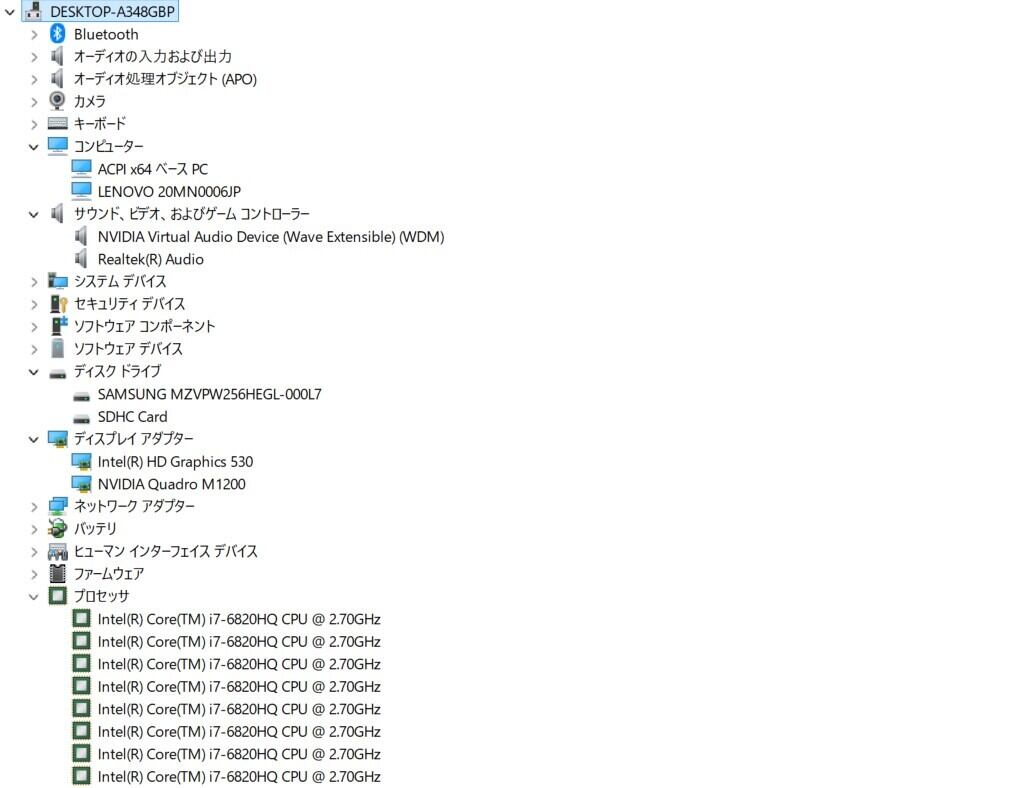 ・CPU:Intel Core i7-6820HQ 2.70GHz(2.71GHz)