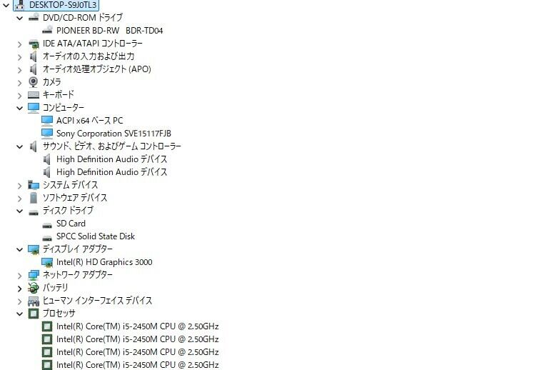 ・CPU:Intel Core i5-2450M 2.50GHz(2.50GHz)