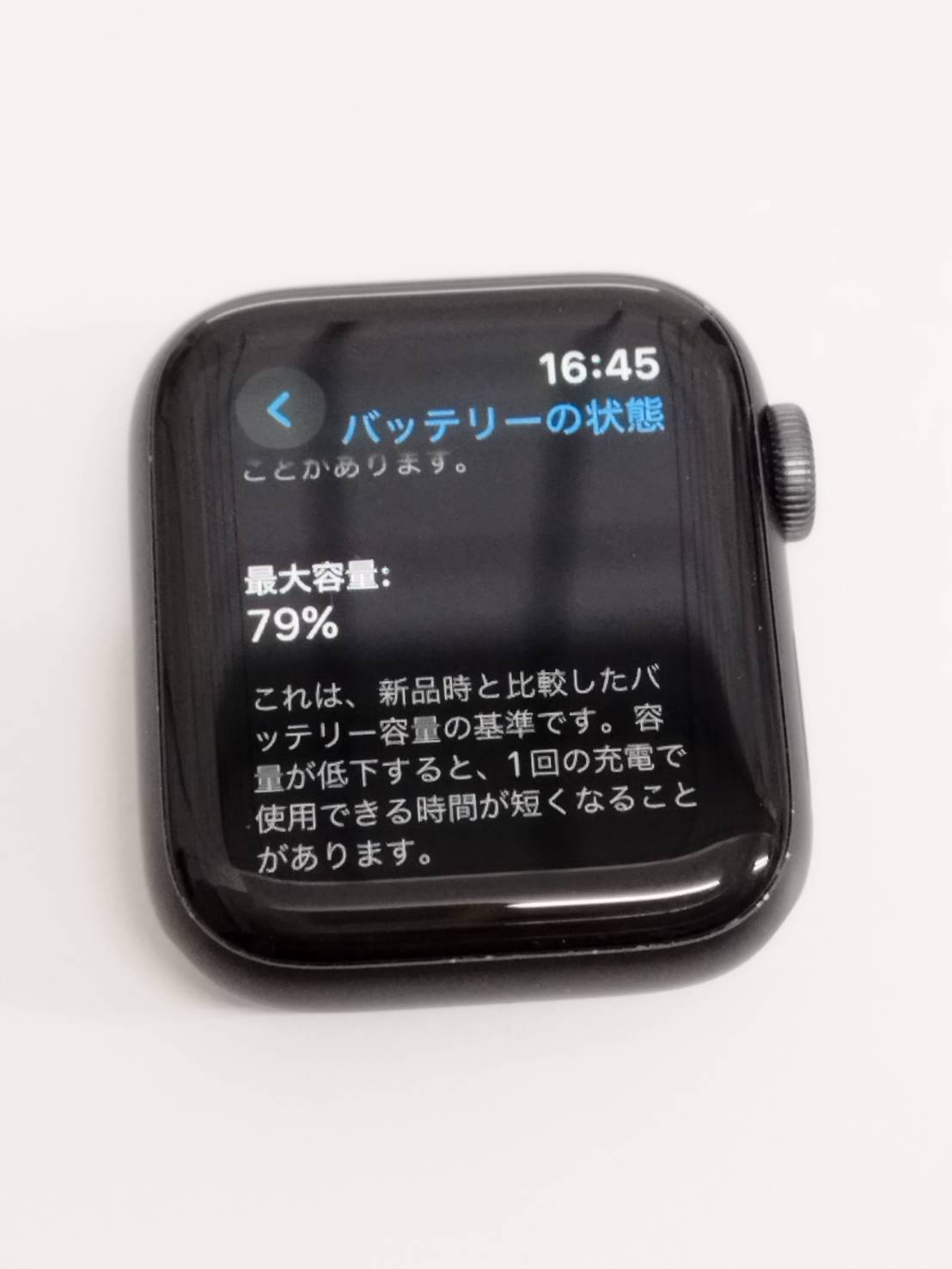 バッテリー最大容量:79%(1時間経過:100%→84%)