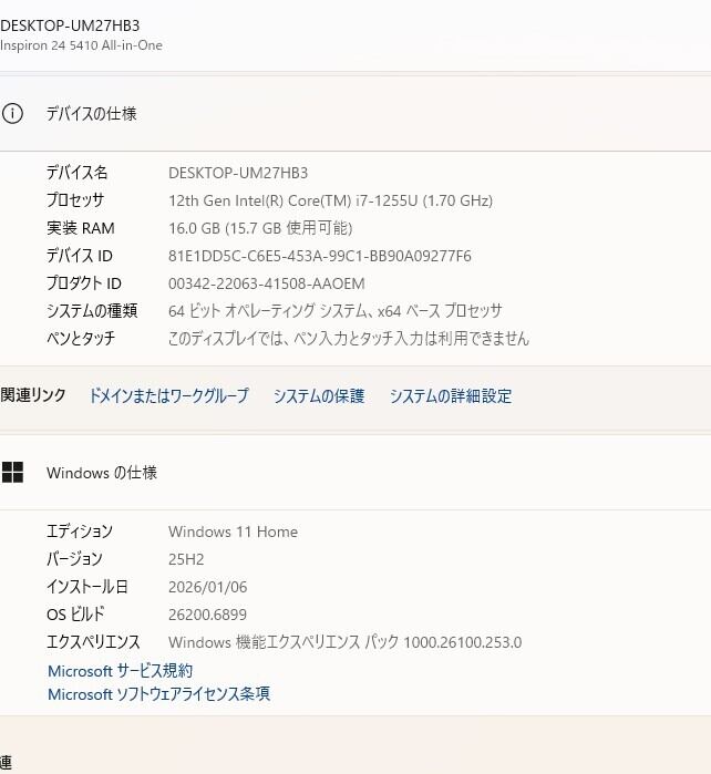 中古一体型パソコン DELL Inspiron 24 5410 Windows11+office 第12世代core i7-1255U/爆速SSD512GB/メモリ16GB/無線/23.8インチ/webカメラ