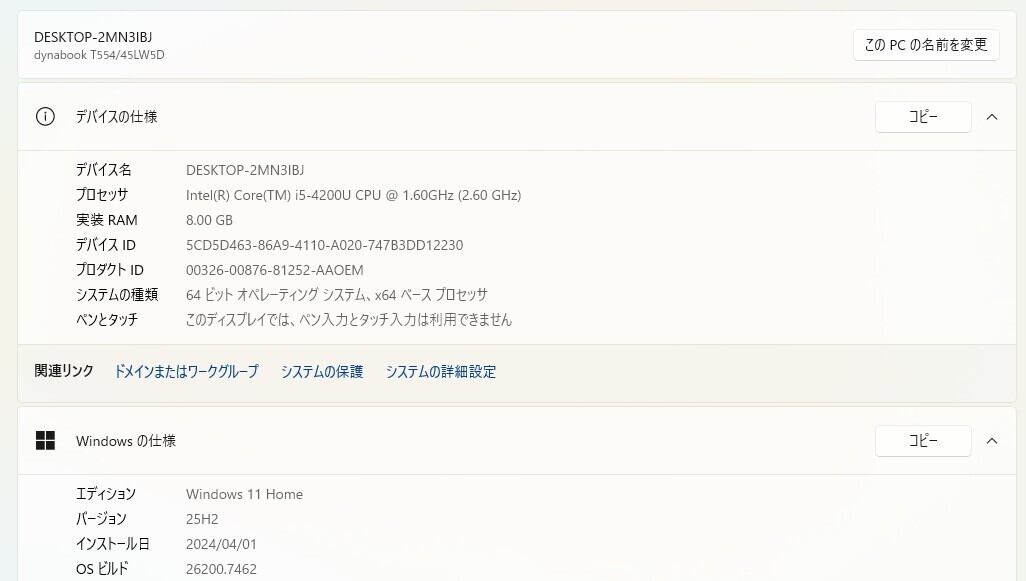 ・OS:Windows11 Home/25H2(ライセンス認証・Windows update済)