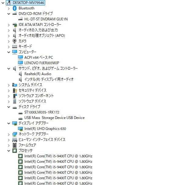 ・CPU:Intel Core i5-9400T 1.80GHz(1.80GHz)