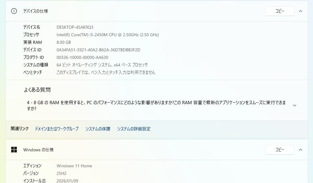 ・OS:Windows11 Home/25H2(ライセンス認証・Windows update済)