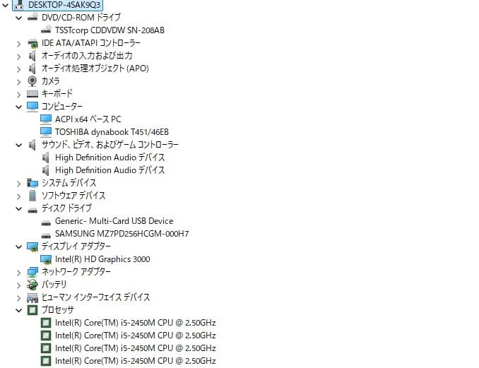 ・CPU:Intel Core i5-2450M 2.50GHz(2.50GHz)