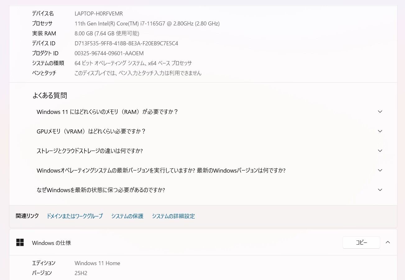 ・OS:Windows11 Home/25H2(ライセンス認証・Windows update済)