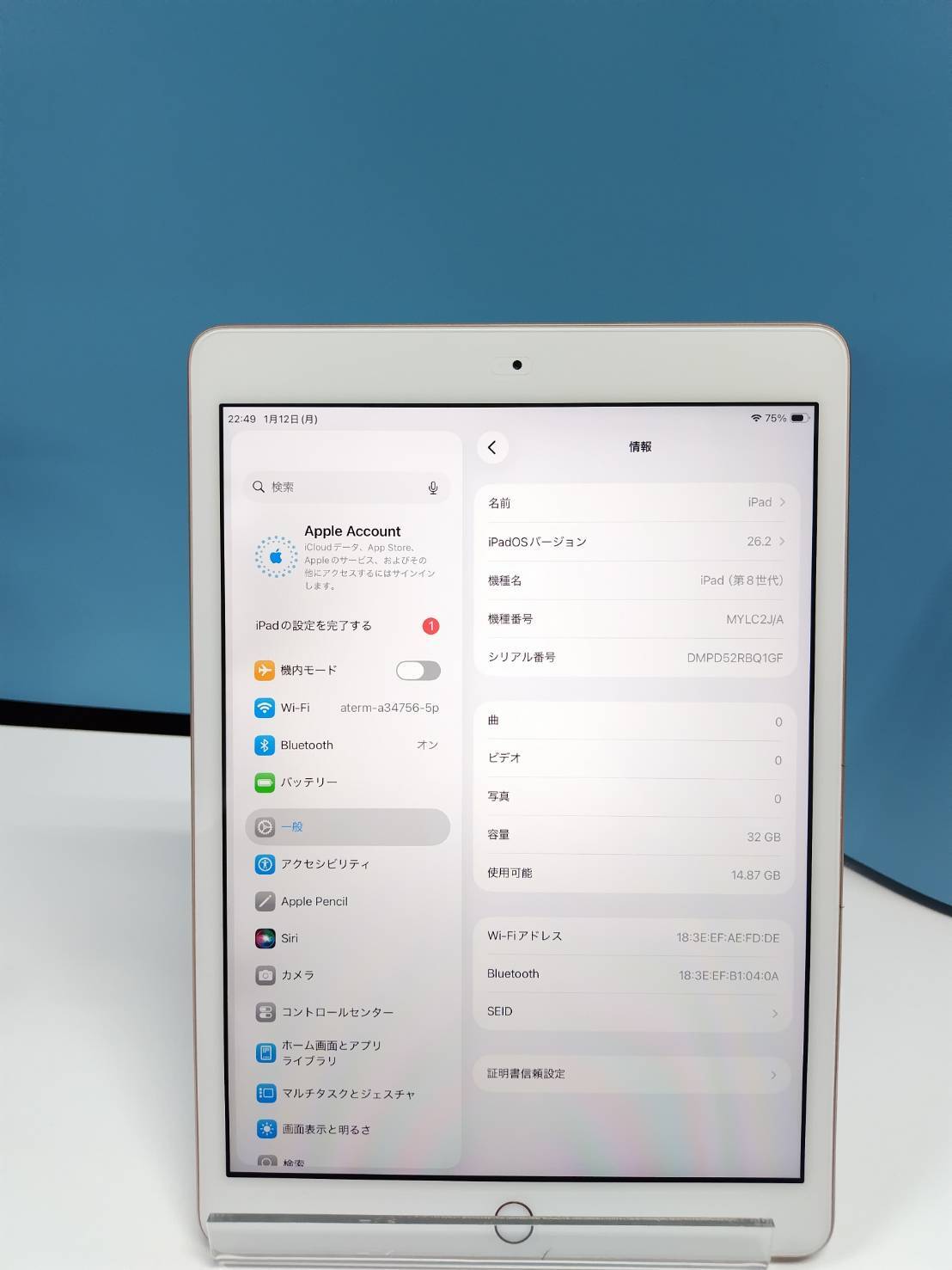 【良品】iPad 第8世代/Wi-Fi/32GB/A2270〈MYLC2J/A〉