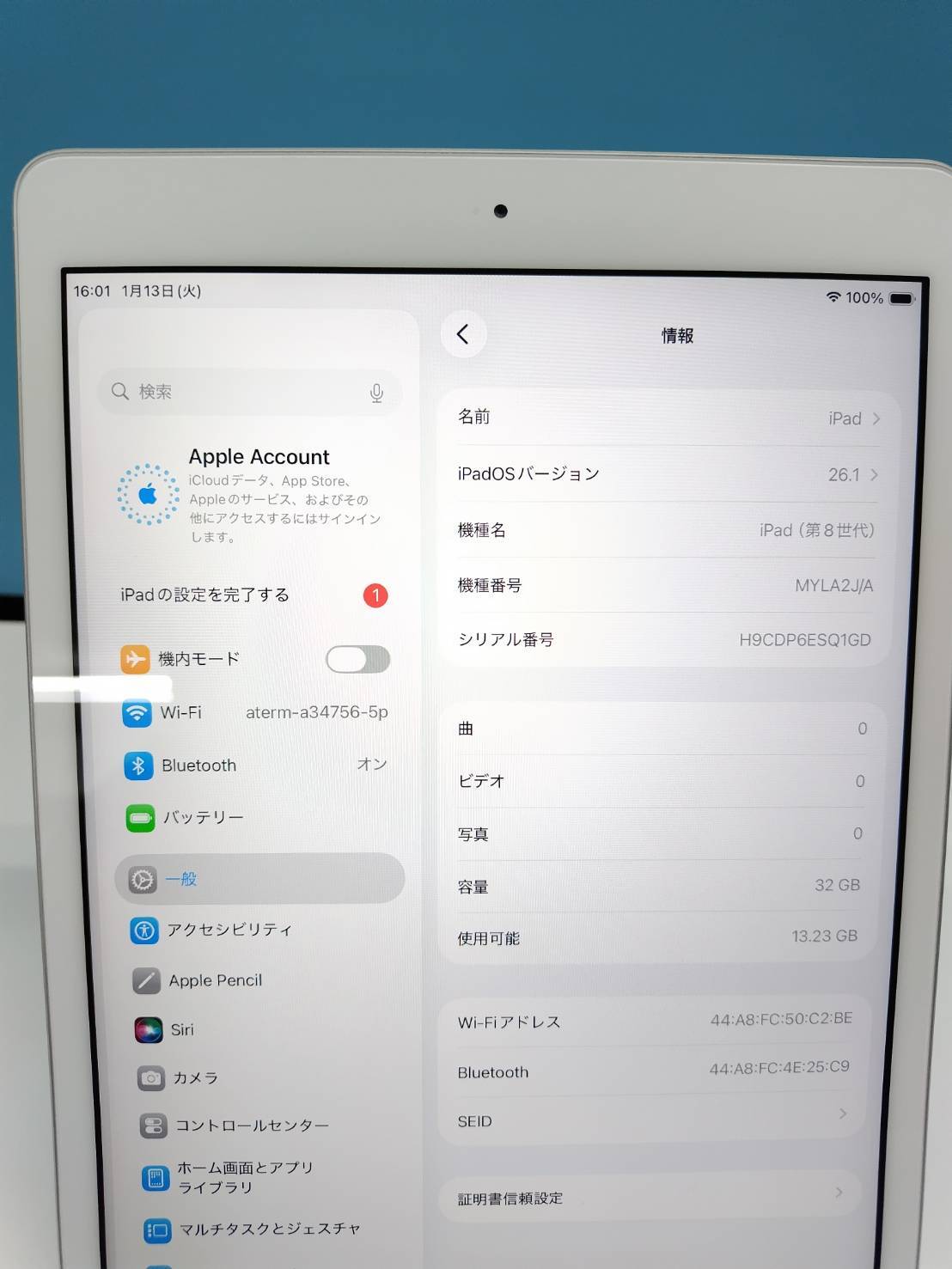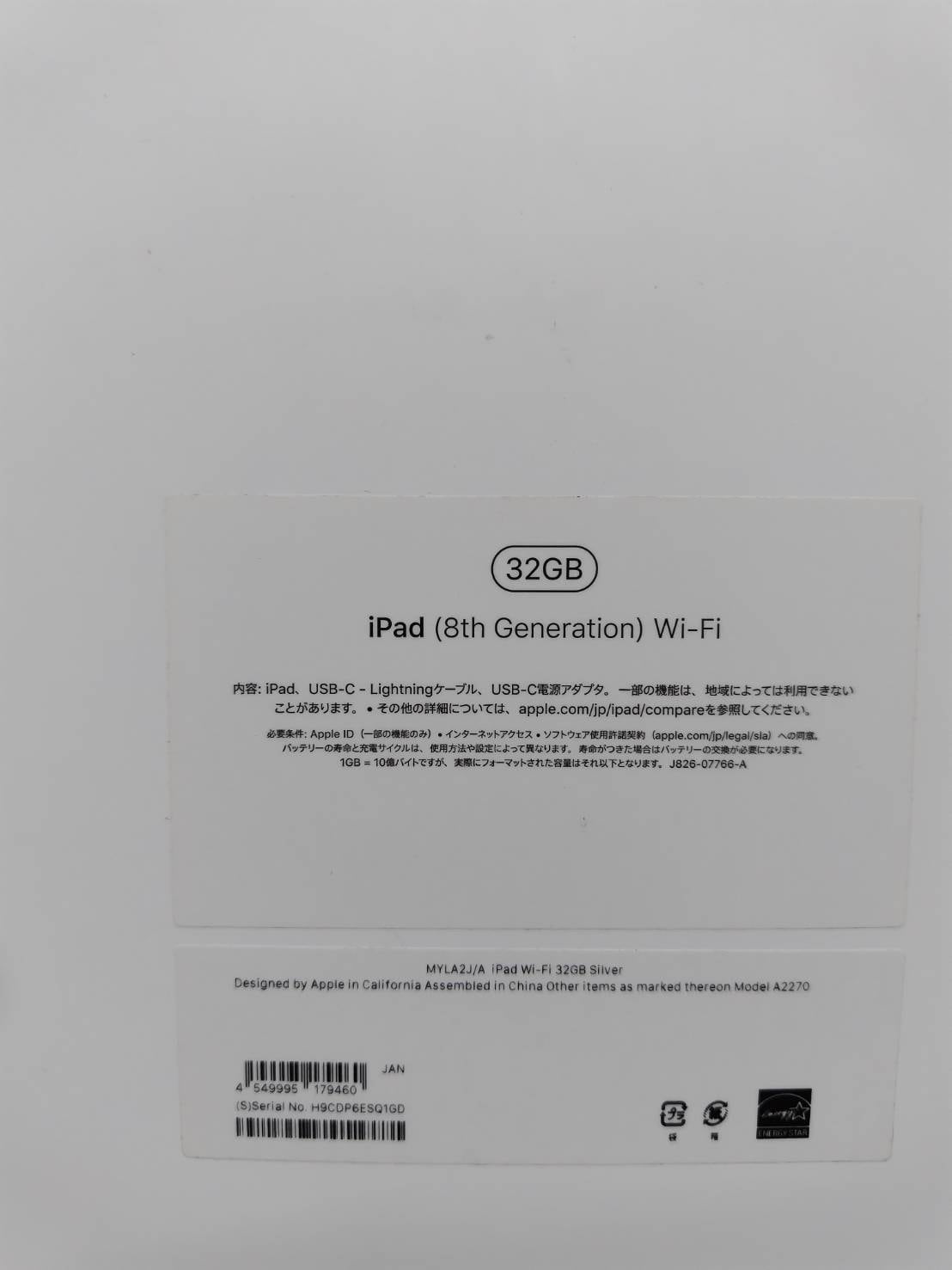 【Wi-Fiモデル】iPad 第8世代/32GB/A2270〈MYLA2J/A〉