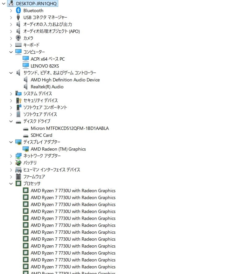 ・CPU:AMD Ryzen 7 7730U (2.00GHz)