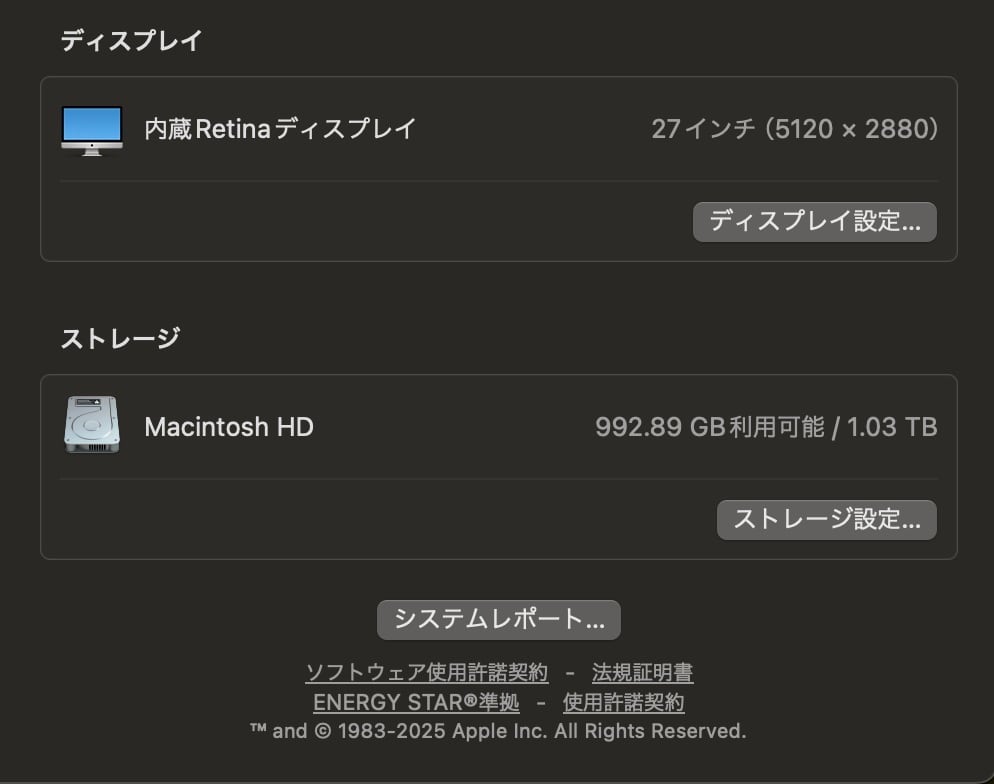 ・ディスプレイ:27インチ Retina 5Kディスプレイ(5,120 x 2,880)