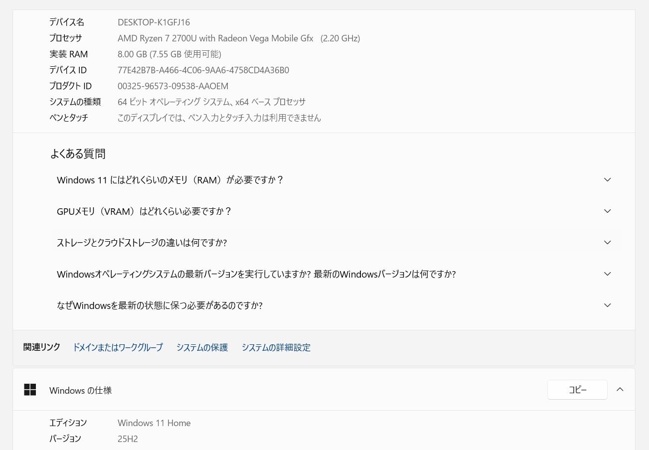 ・OS:Windows11 Home/25H2(ライセンス認証・Windows update済)