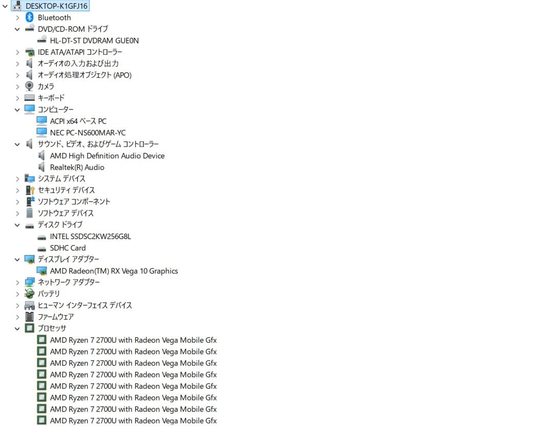 ・CPU:AMD Ryzen 7 2700U (2.20GHz)