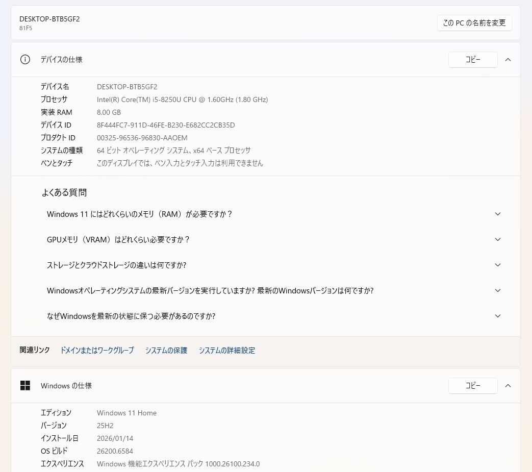 ・OS:Windows11 Home/25H2(ライセンス認証・Windows update済)