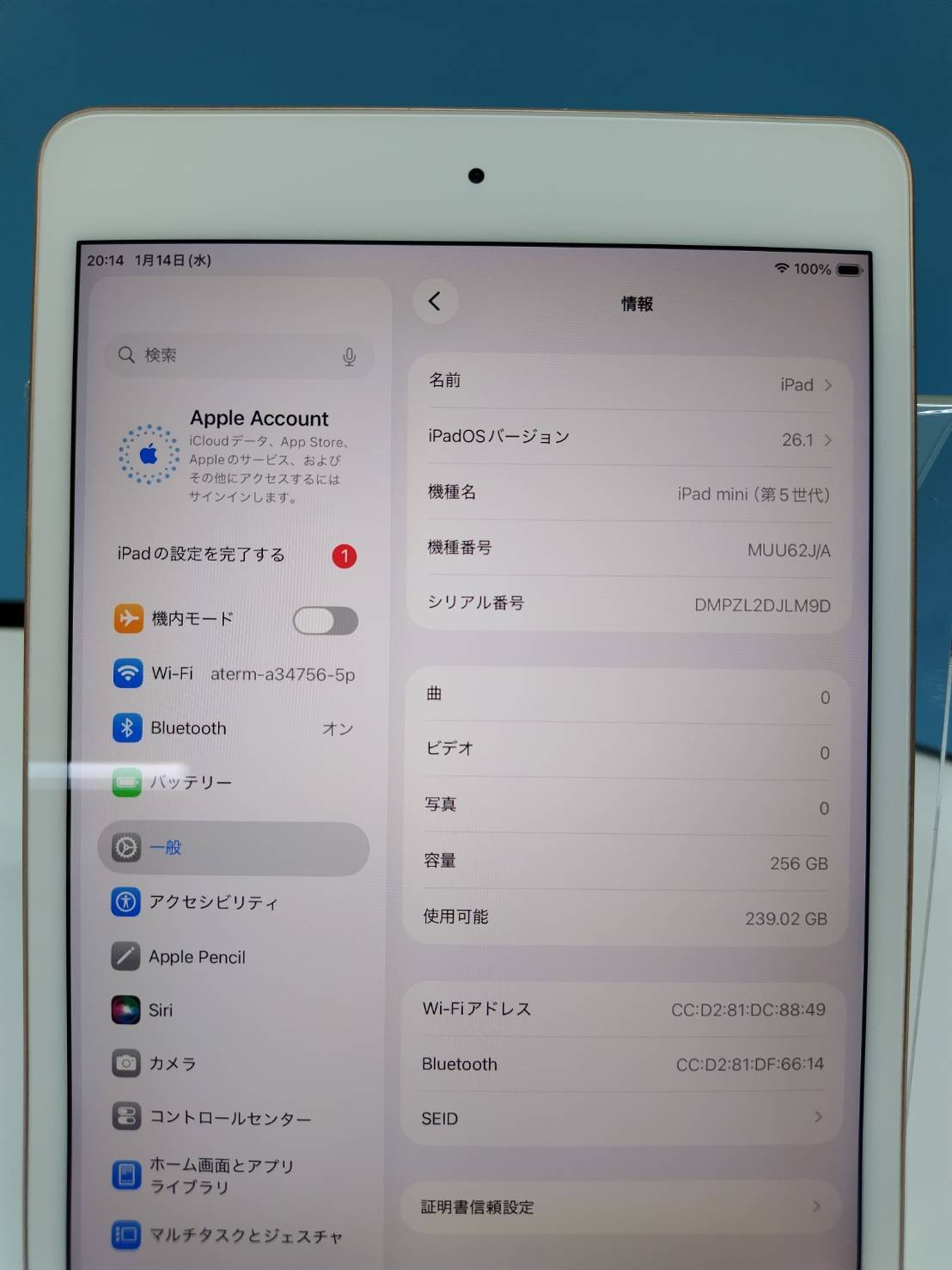 【Wi-Fiモデル】iPad mini 第5世代/256GB/A2133〈MUU62J/A〉