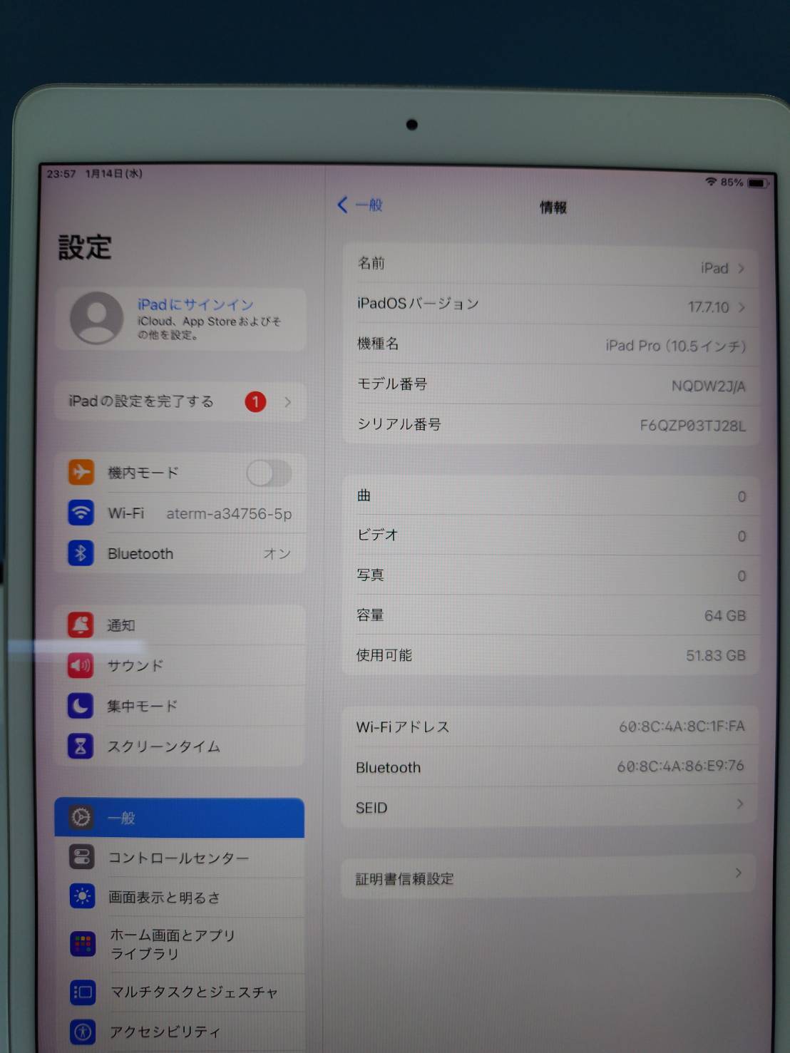 【Wi-Fiモデル】iPad Pro 10.5インチ/第1世代/64GB/A1701〈NQDW2J/A〉