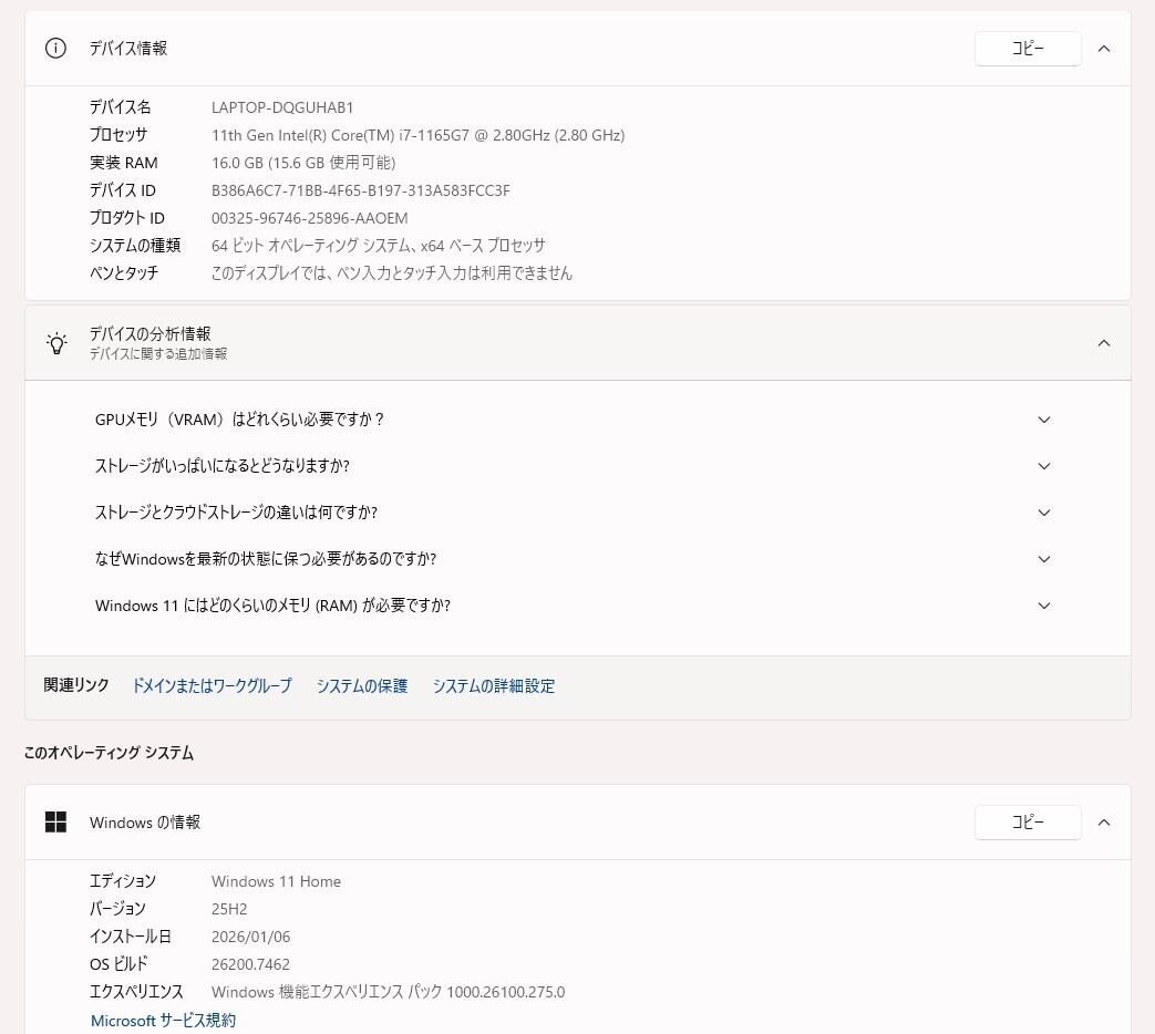 ・OS:Windows11 Home/24H2(ライセンス認証・Windows update済)