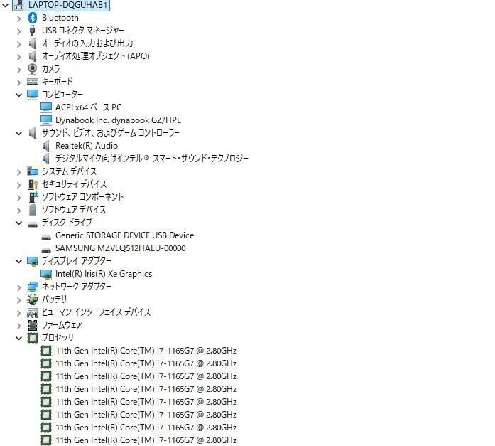 ・CPU:Intel Core i7-1165G7 2.80GHz(2.80GHz)