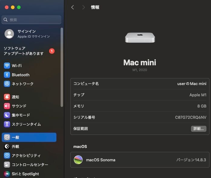 Mac mini(M1, 2020)256GB/8GB〈MGNR3J/A〉④