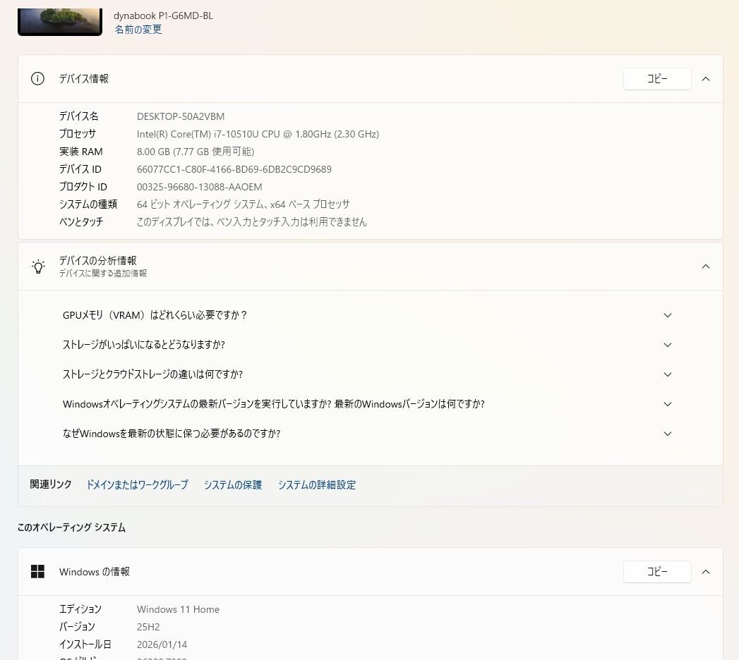 ・OS:Windows11 Home/25H2(ライセンス認証・Windows update済)