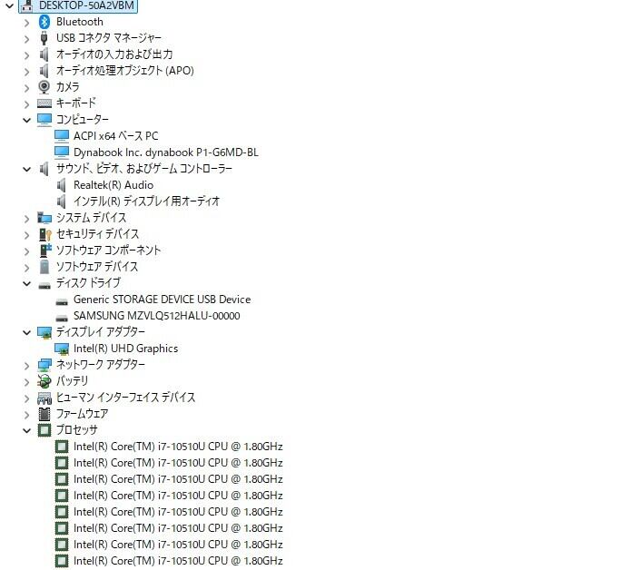 ・CPU:Intel Core i7-10510U 1.80GHz(2.30GHz)