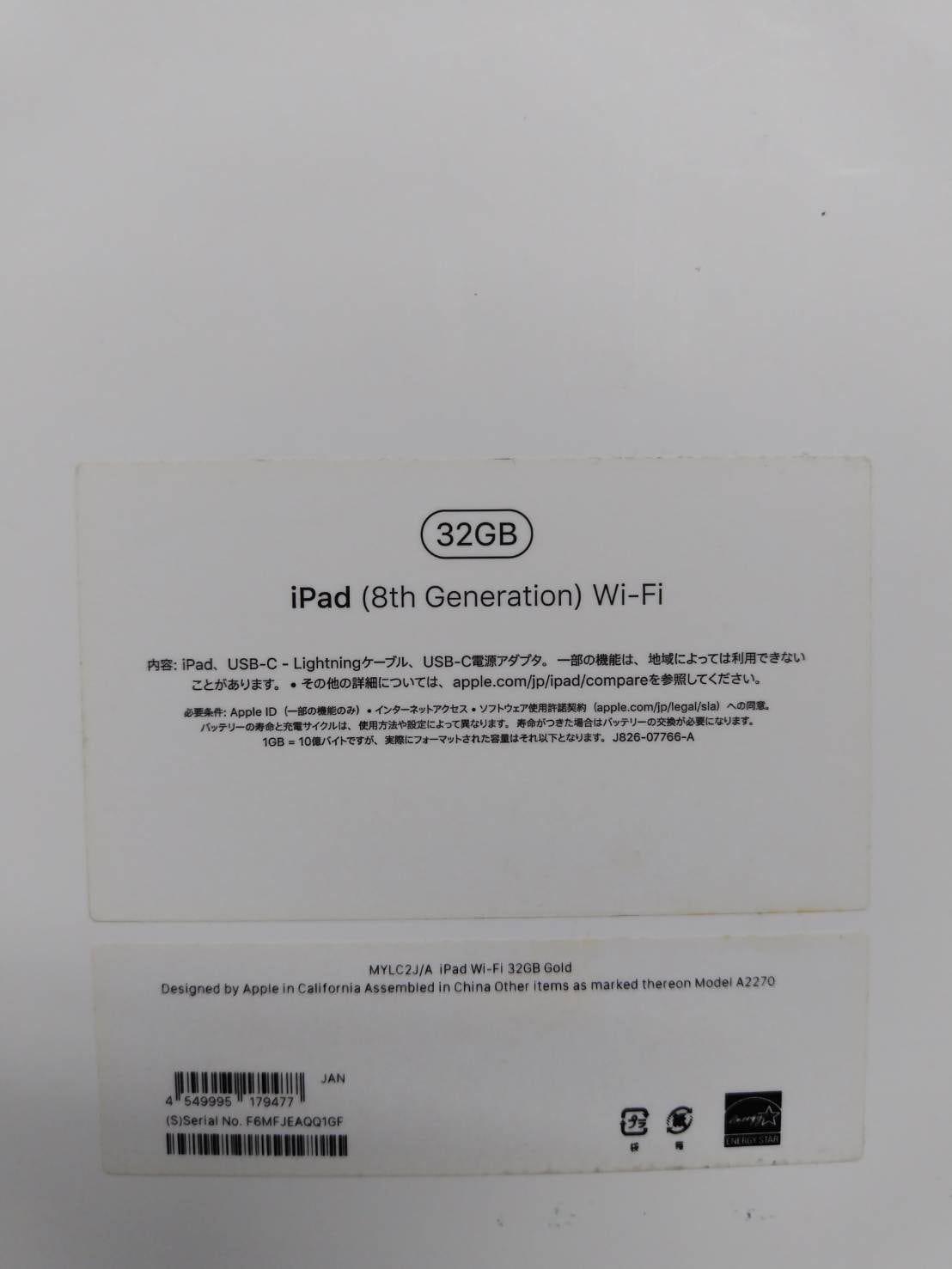 【Wi-Fiモデル】iPad 第8世代/32GB/A2270〈MYLC2J/A〉